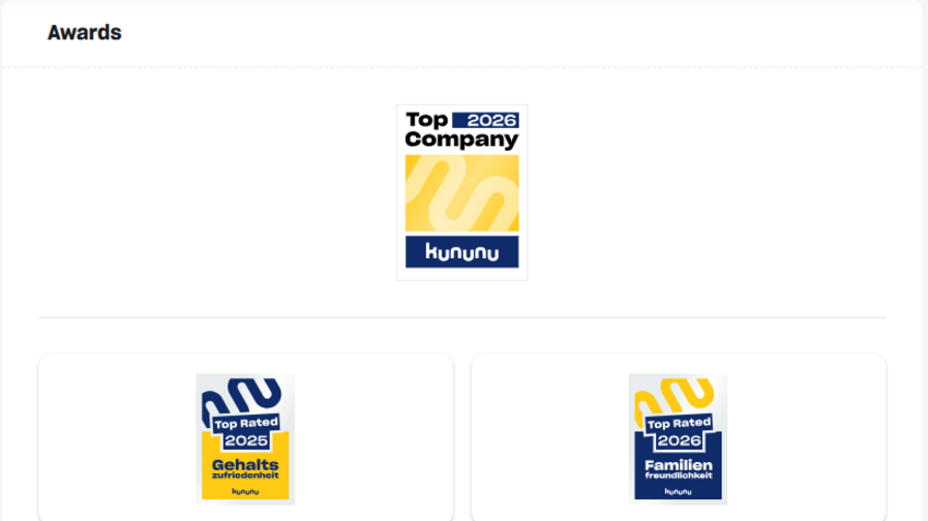 Wir wurden im April 2026 mit dem Kununu-Siegel für Familienfreundlichkeit ausgezeichnet. Nur 3% aller Arbeitgeber, die auf der Bewertungsplattform präsent sind, haben sich dafür qualifiziert.